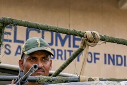 A security personnel vigil at the integrated control position of Attari-Wagah after…